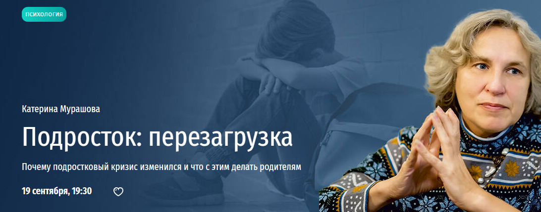 «Много лет я рассказывала родителям про то, что такое подростковость и как нужно по неизбежному требованию подростка „пересматривать детско-родительский договор“. А сейчас буквально на каждой лекции мне задают один и тот же вопрос: „А если ему уже 15 (17, 19) лет, а никакого „пересмотра договора“ он не запрашивает?“. И, прицельно задумавшись, я поняла, что уже давно никто не спрашивает меня про типичные подростковые кризисы — с хлопаньем дверей и заявлениями „я сам все знаю, отстаньте, родители“. Зато появились жалобы „ничего не хочет“, „в депрессии“ и проч. Что же случилось? Порассуждаем вместе на лекции», — говорит Катерина Мурашова.