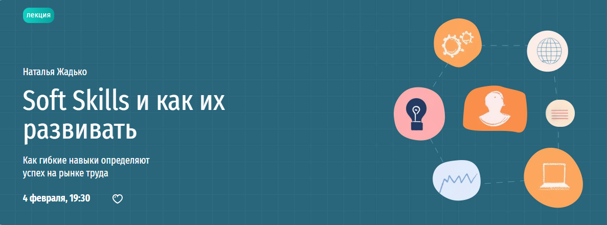 «В необходимости soft skills для карьерного развития сегодня убеждены все: и те, кто учит, и те, кто учится, и те, кто нанимает сотрудников. Однако, мнения о том, что такое soft skills заметно отличаются друг от друга. Что же такое soft skills на самом деле и как их развивать? Обсудим на лекции».