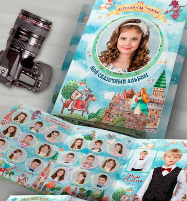 Полиграфический макет фотопланшета трюмо «Сказочный город» для выпускников детского сада или начальной школы, при сложении составляет размер листа А4. Просто перетащите ваши фотографии и дизайн готов к печати. Все рамки и элементы находятся на отдельных слоях.