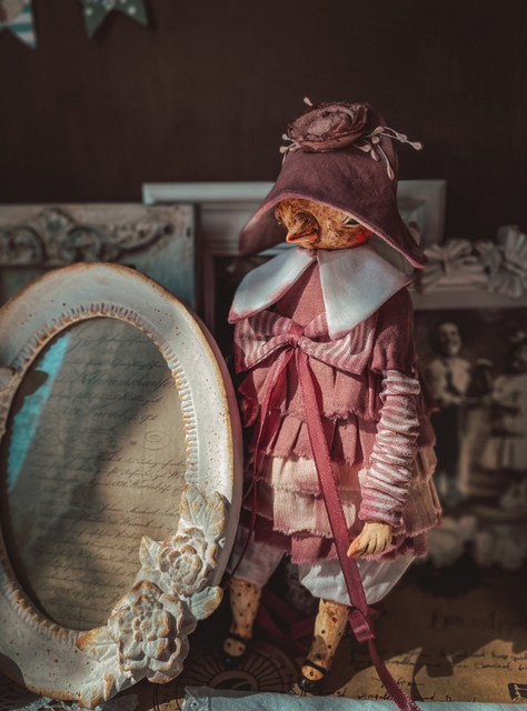 На мастер классе: — лепим птичью голову, крылышки, ножки, расписываем акварелью, — шьем тело, набиваем, собираем, — шьем платья, штанишки, шапочки, — создаем декор для головных уборов- цветочки , гнездышки, — и всё это тонируем!