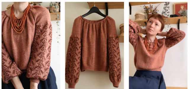 Пуловер Ornata задуман как модель свободного силуэта с широкими рукавами со сборками. Пуловер вяжется сверху вниз, круговыми рядами. Вы можете выбрать варианты оформления низа пуловера: либо связать резинку (в этом случае будет присборенный низ пуловера), либо связать подогнутую планку с зубчиками.