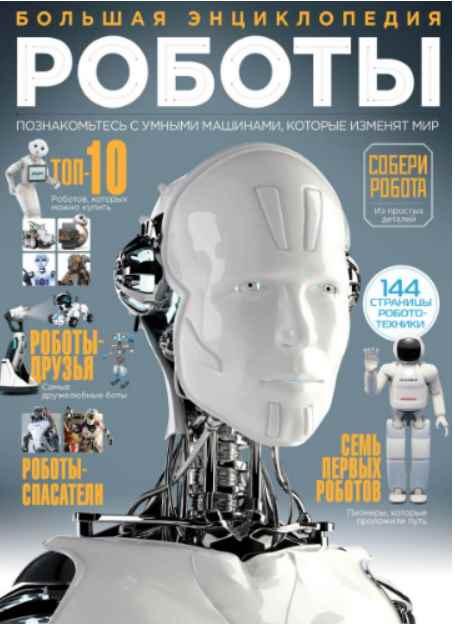 Самая полная и красочная энциклопедия роботов. Новая книга в серии больших энциклопедий для любознательных. Большой подарочный формат, внутри — очень много рисунков, фотографий, инфографики, понятный и интересный текст. Супер-подарок для ребенка! Полная информация о роботах: от истории создания первых механизмов, управляемых человеком, до современнейших машин, оснащенных искусственным интеллектом. Роботы-домашние питомцы, человекоподобные роботы-андроиды, гигантские боевые роботы и роботы-врачи, спасающие жизни, самоуправляемые автомобили и роботы-сиделки — в этот мир невозможно не влюбиться! А для тех, кто мечтает о собственном электронном друге, в конце книги есть сюрприз — инструкция по сборке собственного робота на платформе конструктора Raspberry Pi.