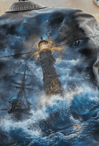 [Роспись по ткани] Маяк, замшевая черепашка, медуза [Даша Лисенкова]
