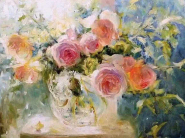 Нежные розы в стеклянной вазе рисуем с Ириной