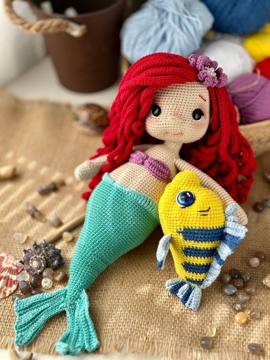 вязаная куколка, елена метлина, русалочка крючком, русалочка с маленьким другом