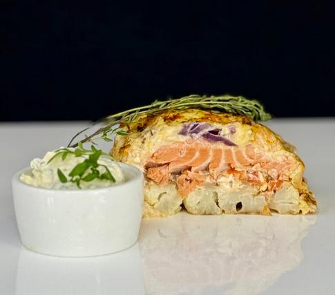 Сочная и нежная красная рыба, запечённая на обжаренной подушке из цветной капусты, заправленной греческим соусом. Подается с соусом «Тар-Тар».