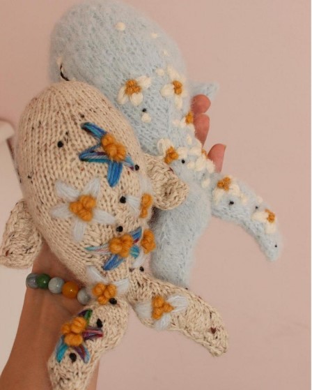 МК в формате PDF с построчным/порядовым описанием процесса вязания кита с множеством фотографий + бонус (вышивка цветов).
