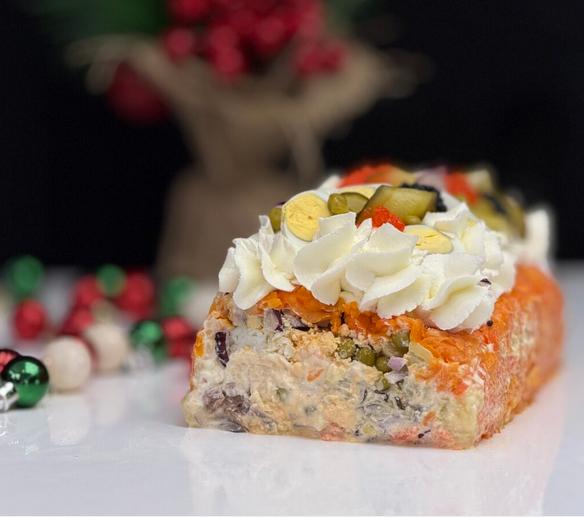 Салат в рулете «Оливье по-царски» — необычное прочтение традиционного блюда, которое может стать фирменным благодаря небольшим изменениям в составе ингредиентов и способе подачи.