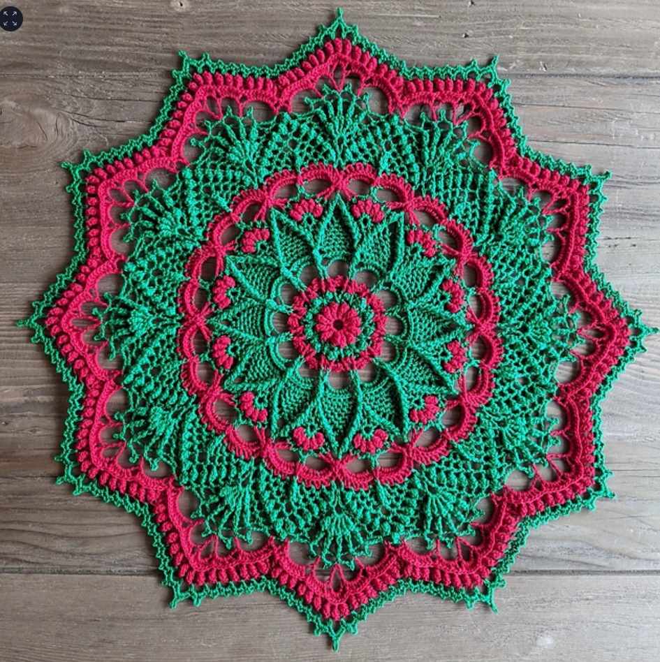 Ваше натяжение определит такие вещи, как размер крючка, метраж, готовый размер и высоту стежков. При использовании рекомендуемых ниток и крючка для этой схемы потребуется примерно 350-400 ярдов ниток. А ваша готовая салфетка будет иметь диаметр около 30 см/12 дюймов от точки до точки.