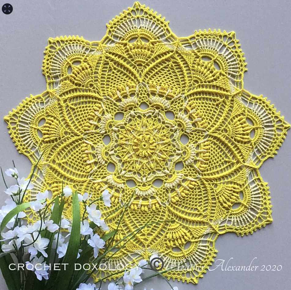 Ваше натяжение определит такие вещи, как размер крючка, метраж, готовый размер и высоту стежков. При использовании рекомендуемых ниток и крючка для этого узора потребуется примерно 500-550 ярдов ниток. А диаметр готовой салфетки от начала до конца составит около 37 см/14,5 дюймов.