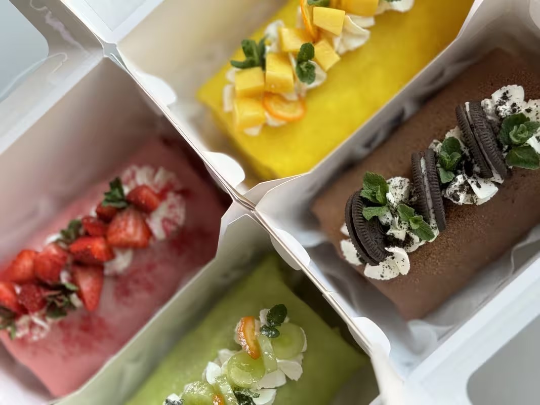 нежнейшие блинные рулетики на натуральных красителях, удобный формат и подача — 4 рулета: