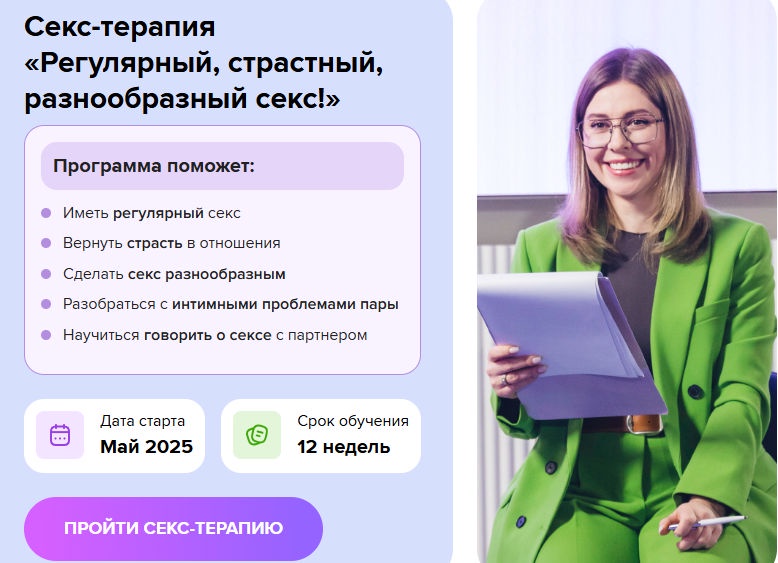 В своей работе я использую секс-терапию и КПТ. Hаучно обоснованные методы, эффективность которых подтверждена исследованиями!