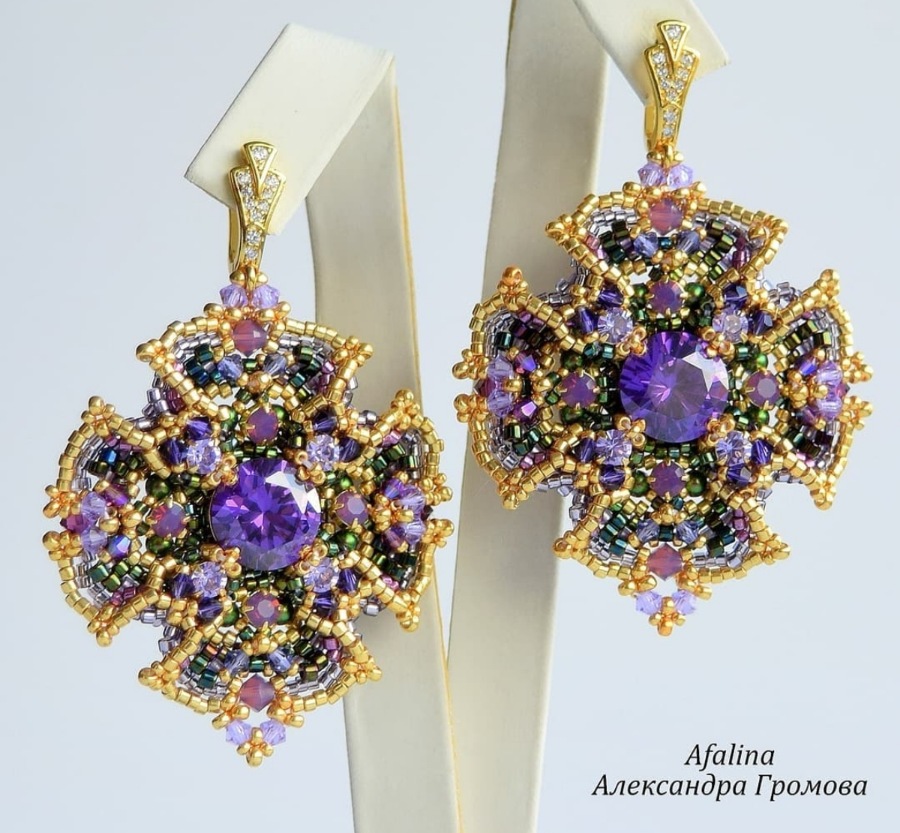 Краткий список материалов: японский бисер делика 11/0,10/0, круглый бисер 11/0 и 15/0, шатоны ss16 4 мм, риволи, фианиты или любые круглые кристаллы 12 мм, оправа для кристаллов 12 мм, жемчуг 3 мм, биконусы 3 мм и 4 мм, английский замок для серег или любой другой какой вам удобнее , нитки для бисера, иглы для бисера 12/0, ножницы, плоскогубцы.