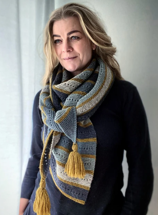 Шаль вяжется платочной вязкой. Прибавки делаются только с правой стороны.