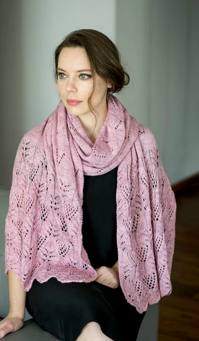 со схемой корпуса шали, повторив 40 р. схемы 4 раза и провязывая первые и последние 3 п. ряда платочным узором.
