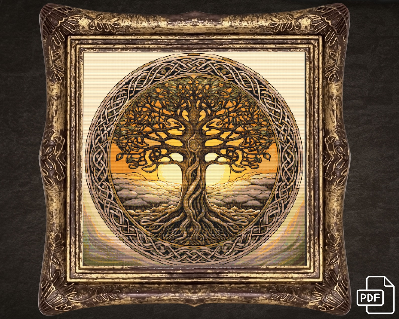 Вдохновленная почитаемым кельтским символом Древа Жизни, эта схема для вышивки крестом перенесет вас в захватывающее путешествие по переплетающимся ветвям величественного дерева, олицетворяющего взаимосвязь всех живых существ. Замысловатые узлы и узоры, украшающие ветви дерева, отражают вечный цикл жизни, роста и обновления — заветную концепцию, почитаемую древними кельтскими культурами.