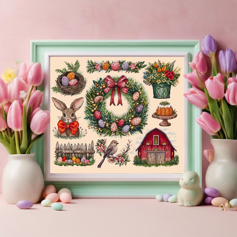 Встречайте весну с нашей очаровательной схемой цифровой вышивки крестом Easter Sampler! Этот восхитительный дизайн содержит причудливые мотивы, идеально подходящие для ваших пасхальных проектов по вышивке. Начните сезонное рукоделие с этой простой схемой уже сегодня. Идеально подходит для добавления нотки очарования ручной работы в ваш праздничный декор!