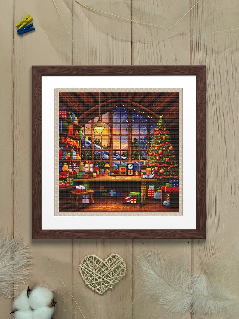 С Рождеством! Вы когда-нибудь хотели увидеть мастерскую Санты? Прикоснитесь к волшебству создания рождественских подарков с новой схемой вышивки крестом «Мастерская Санты» PDF и SAGA. Этот чудесный цифровой рисунок для вышивки крестом привнесет в вашу коллекцию частичку скандинавского терпения. Вы получите цифровую загрузку этого шаблона, что позволит вам начать процесс в мгновение ока.