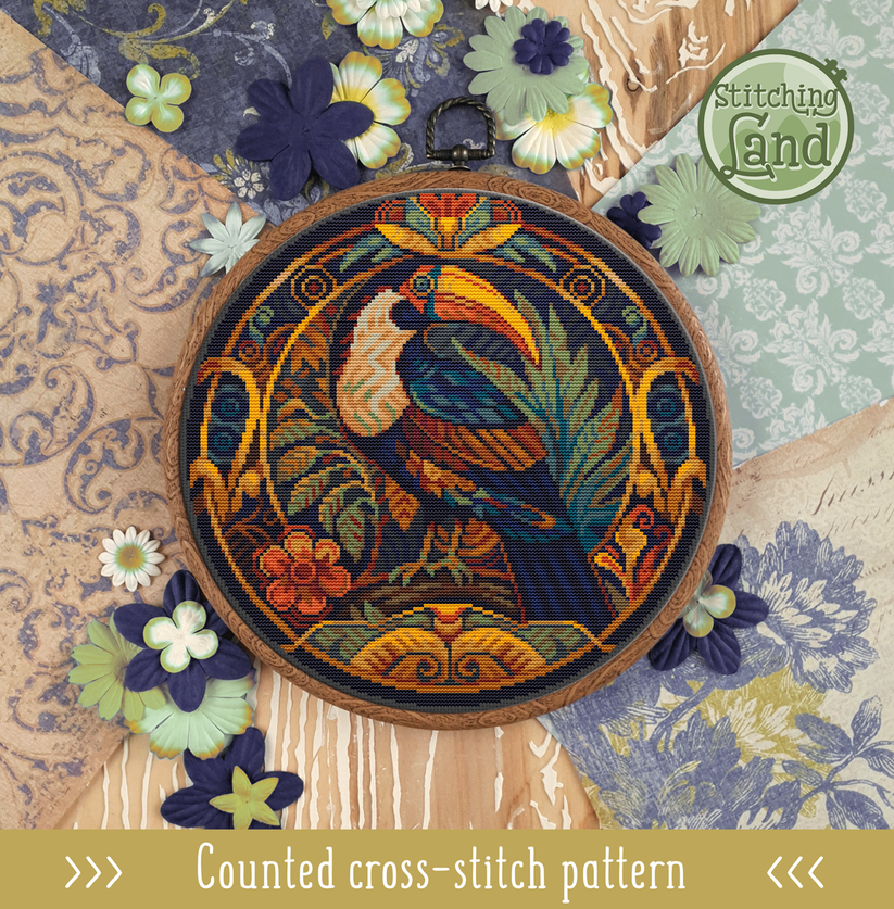 Схема вышивки крестом Тукан в стиле модерн [Stitching Land]