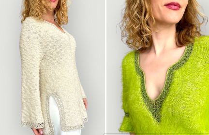 Для отделки рекомендуем brillino и ровную (без утолщений) пряжу в тон brillino.