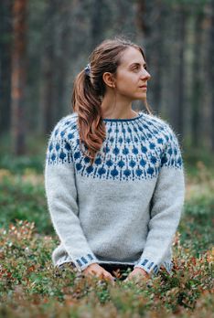 Свитер спущен с нижней части и имеет А-силуэт. Идеально подходит для походов в горы за черникой.