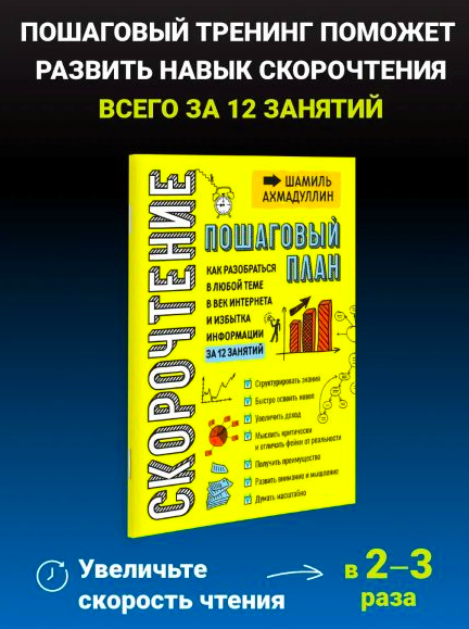 Скорочтение для взрослых — это уникальное пособие, созданное для тех, кто стремится повысить свою эффективность в усвоении информации. В книге детально изложены методы, которые помогут освоить навыки быстрого чтения и эффективного анализа текста. Автор, Шамиль Ахмадуллин, подготовил материал так, чтобы он был доступен не только старшеклассникам, но и взрослым читателям, желающим развивать свои когнитивные способности.