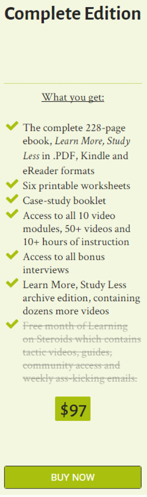 You also get access to the original book,Learn More, Study Less. This book has been read thousands of times. It comes with Kindle and eReader formats, so you can read it comfortably.
