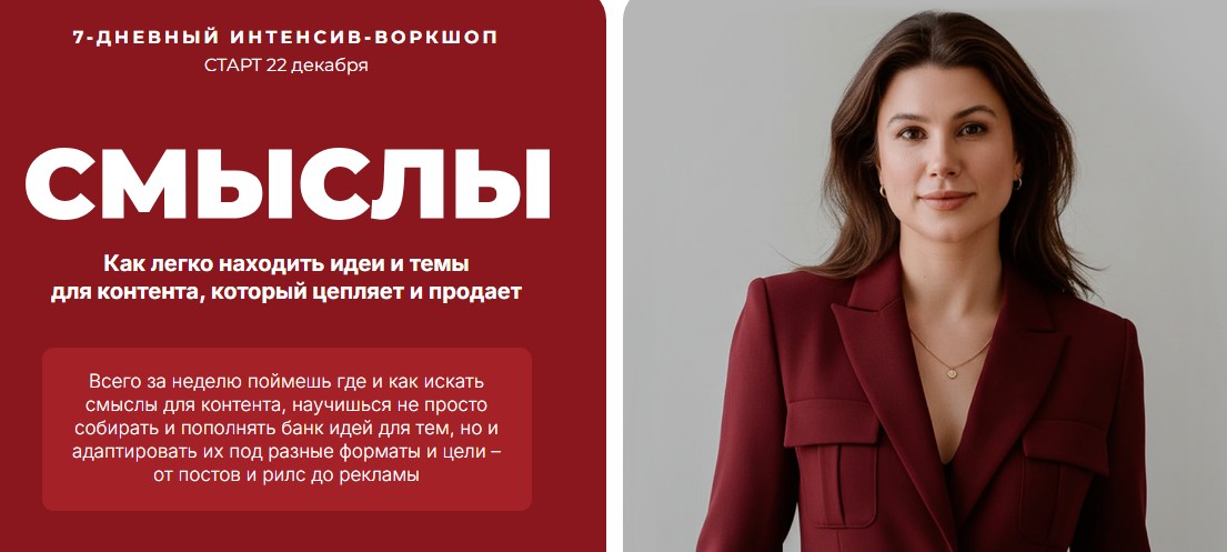 Всего за неделю поймёшь, где и как искать смыслы для контента, научишься не просто собирать и пополнять банк идей для тем, но и адаптировать их под разные форматы и цели — от постов и рилс до рекламы.