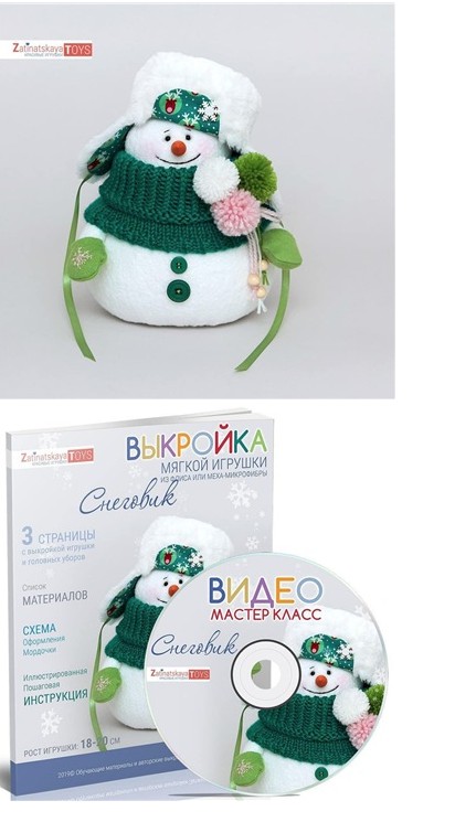 PDF книга «Выкройка мягкой игрушки из флиса и меха-микрофибры Снеговик», 18 страниц, 3,2 МБ. Дополнительно к выкройке прилагаются 7 Видео Уроков в формате MP4, как сшить снеговика своими руками!