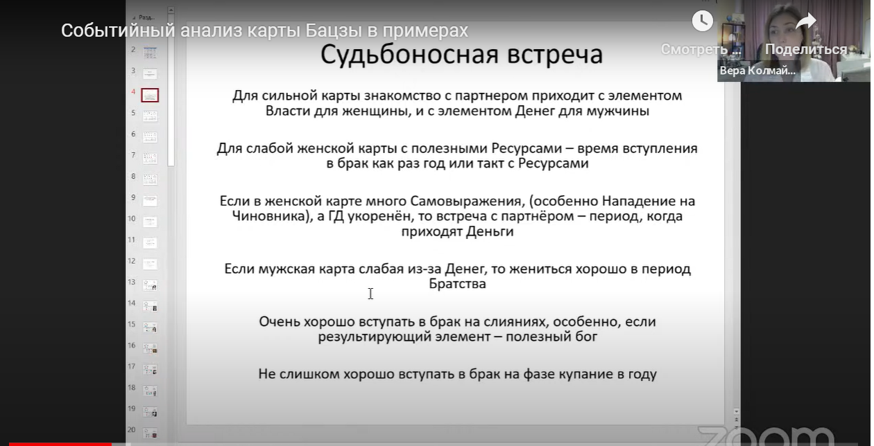 На практикуме обсуждали, что именно показывает вероятные события в Бацзы. Событие может быть как негативным, так и позитивным. Каким оно будет, конечно, во многом зависит от самого человека, от его отношения к жизни. Но, есть некоторые маркеры, которые заранее укажут, насколько сложно будет пережить грядущие перемены.