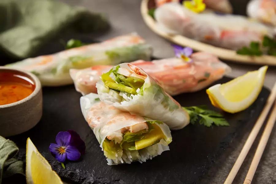 Спринг-ролл «Ранняя весна» с манго и креветками.