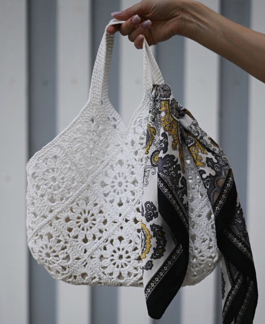 Сумка вяжется отдельными мотивами и сразу соединяется в процессе вязания. В конце выполняются ручки и обвязка. На выбор 2 варианта: сумка с выполнением швов и более ажурный вариант.
