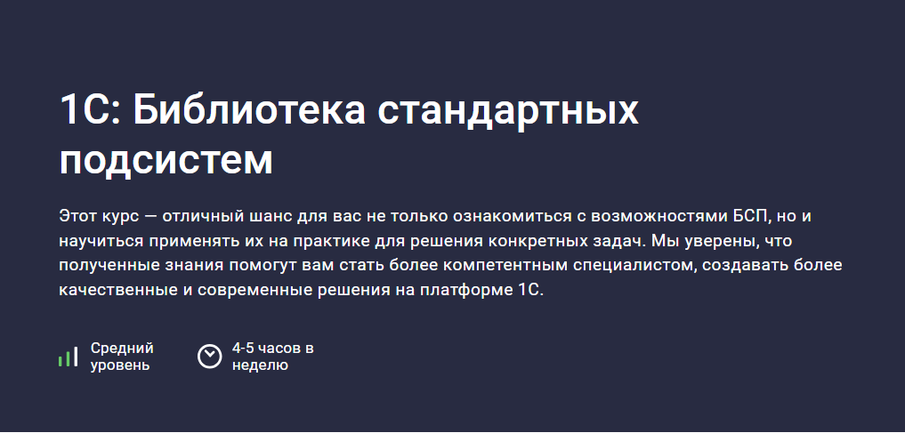 Этот курс — отличный шанс для вас не только ознакомиться с возможностями БСП, но и научиться применять их на практике для решения конкретных задач. Мы уверены, что полученные знания помогут вам стать более компетентным специалистом, создавать более качественные и современные решения на платформе 1С.