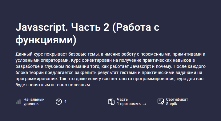 [Stepik] Javascript. Часть 2. Работа с функциями [Hayk Inants]