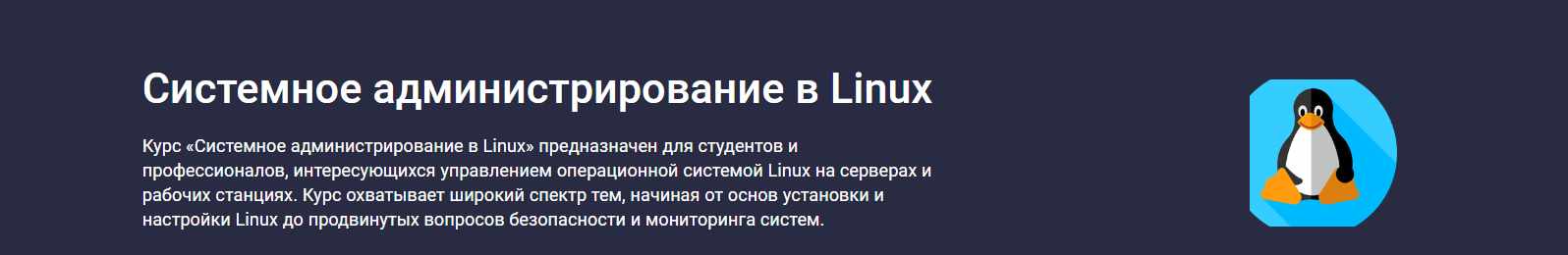 «Системное администрирование в Linux» — предназначен для начинающих системных администраторов и DevOps-специалистов, желающих освоить навыки управления Linux-системами.