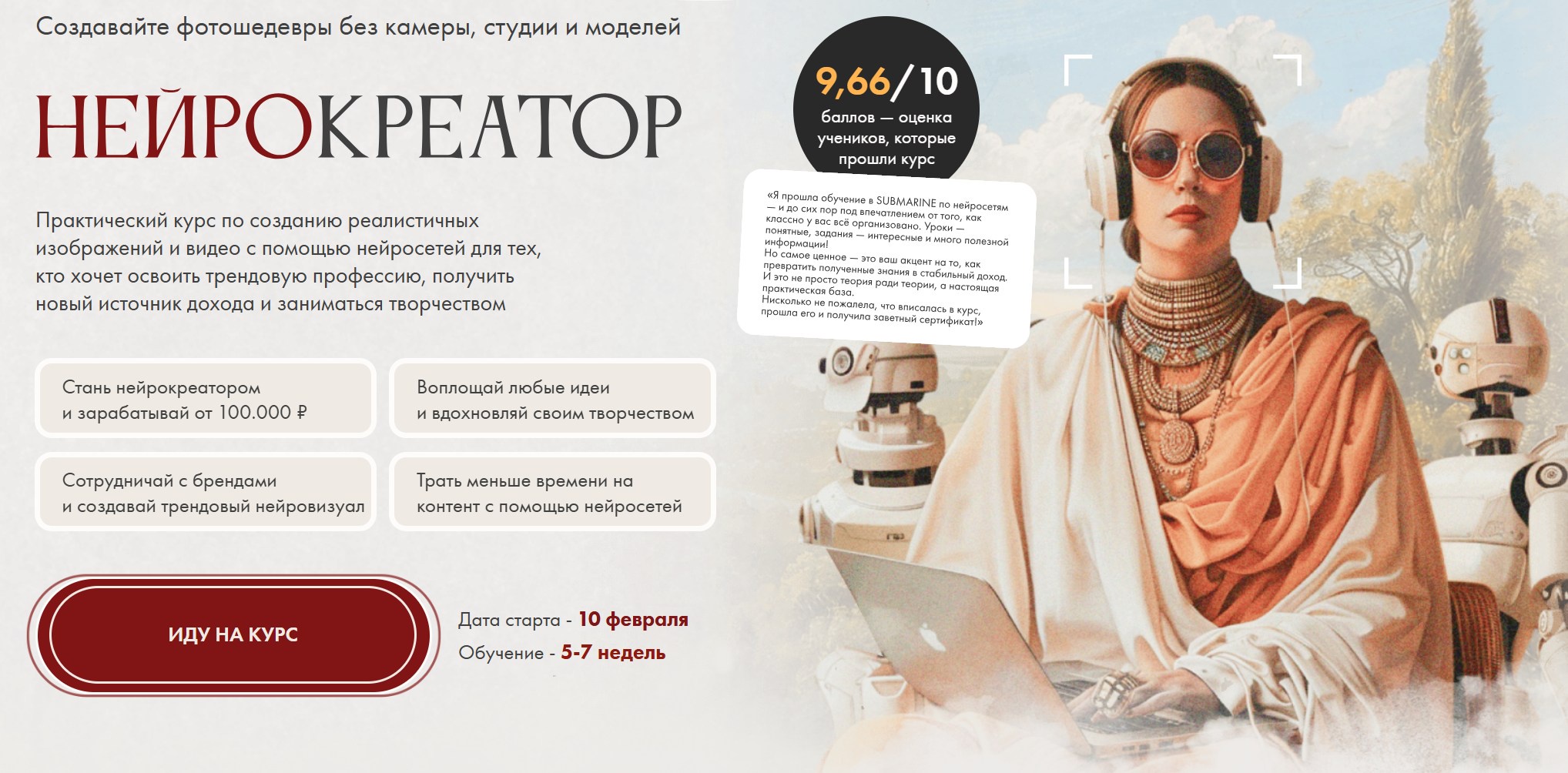 Для тех, кто хочет пойти дальше — научиться создавать не только фото, но и видео, собирать визуалы для брендов и клиентов, оформлять портфолио и зарабатывать на профессии нейрокреатора.