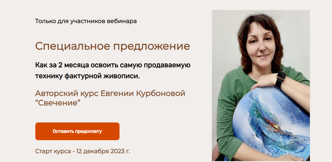 Художникам, кто уже пишет работы, курс поможет погрузиться в техники, научиться использовать приемы Евгении по работе со свечением, внести в свои картины новое звучание.