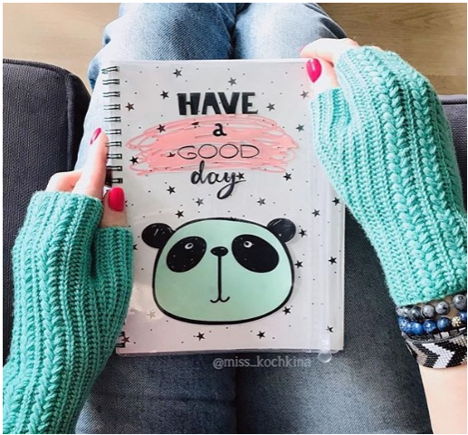 Митенки связаны поперёк, начиная сбоку, одним полотном. В процессе вывязываются клин для большого пальца без отрыва нити. В конце соединяется начальный и кромочный ряды при помощи крючка.