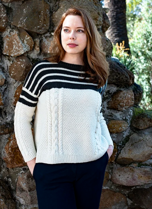 Размеры Женские XS (S, M, L, XL, 2XL): на объем груди 71-76 (81-86, 91-96, 102-107, 112-117, 122-127) cм. Размеры готового изделия 93 (103, 112.5, 122, 130, 143.5) см — объем груди после ВТО. Предполагаемая прибавка на свободное облегание: 15-20 см. На фото: размер М (112.5 cм); прибавка на свободное облегание — 16 cм. Пряжа Brooklyn Tweed Arbor (100% овечья шерсть; 133 м/ 50 гр); Цвет А: Humpback (серо-коричневый) – 2 (3, 3, 3, 4, 4) мотков. Цвет В: Hammock (белый) – 7 (8, 8, 9, 10, 11) мотков. Спицы Размер 4 мм: круговые длиной 60-80 cм и набор чулочных. Размер 3.75 мм: круговыe длиной 60-80 см, круговыe длиной 40 см и набор чулочных. Дополнительно Маркеры, съёмные маркеры или булавки, бросовая нить.