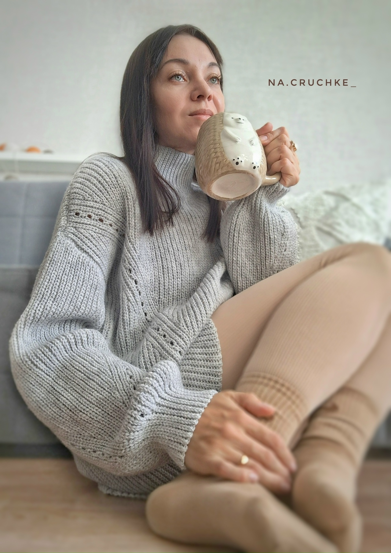 Плюс поясняющие видеоролики по ключевым моментам. Без привязки к конкретной пряже и плотности вязания. Без порядового описания. Описание строится на примере моей работы. Все расчеты для вашего размера, вы выполняете индивидуально, ориентируясь на свою плотность вязания, подставляя свои значения в мой алгоритм расчета.