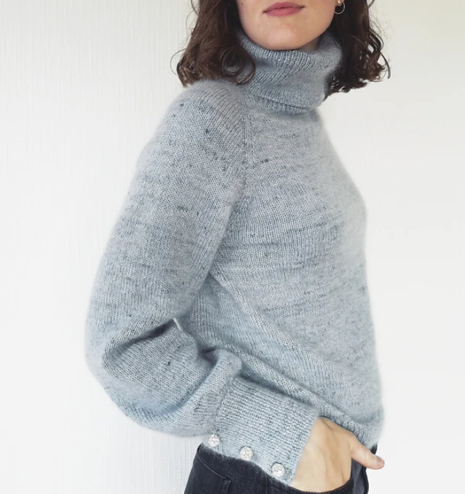 МАТЕРИАЛЫ — 3мм – 3,5 мм [US 21/2 – 4] круговые спицы. — Маркеры для петель. — Игла для трикотажа. — Пуговицы — 6 штук. РАЗМЕРЫ XS. S. M. L. XL. 2XL. 3XL= 82. 88. 94. 102. 110. 122. 134 cм [329/32 . 3441/64 . 371/64 . 405/32 . 52 . 435/16 . 481/32 . 523/4 ʺ] — конечная ширина пуловера по линии окружности бюста. Рекомендуемый припуск на свободу облегания = + 0-6см к действительному (=по фигуре) измерению окружности бюста. Пуловер на фото: размер M, припуск на свободу облегания = + 4 см. ПРЯЖА TOT SINGLE SOCK from Tôt le matin (100%- меринос, 366м-100г) — цвет « NORROISE » : 3. 4. 4. 5. 5. 5. 6 моточка/ов, или около 1090. 1230. 1370. 1510. 1650. 1790. 1930 м [1192 . 1345 . 1498 . 1651 . 1804 . 1958 . 2111 ярдов] + TOT KIDSILK from Tôt le matin (72%-мохер, 28%- шелк; 420м-50г) – цвет « ODE » : 3. 3. 3. 4. 4. 5. 5 моточка/ов, или около 1050. 1170. 1260. 1400. 1540. 1680. 1820 м [1148 . 1280 . 1378 . 1531 . 1684 . 1837 . 1990 ярдов]