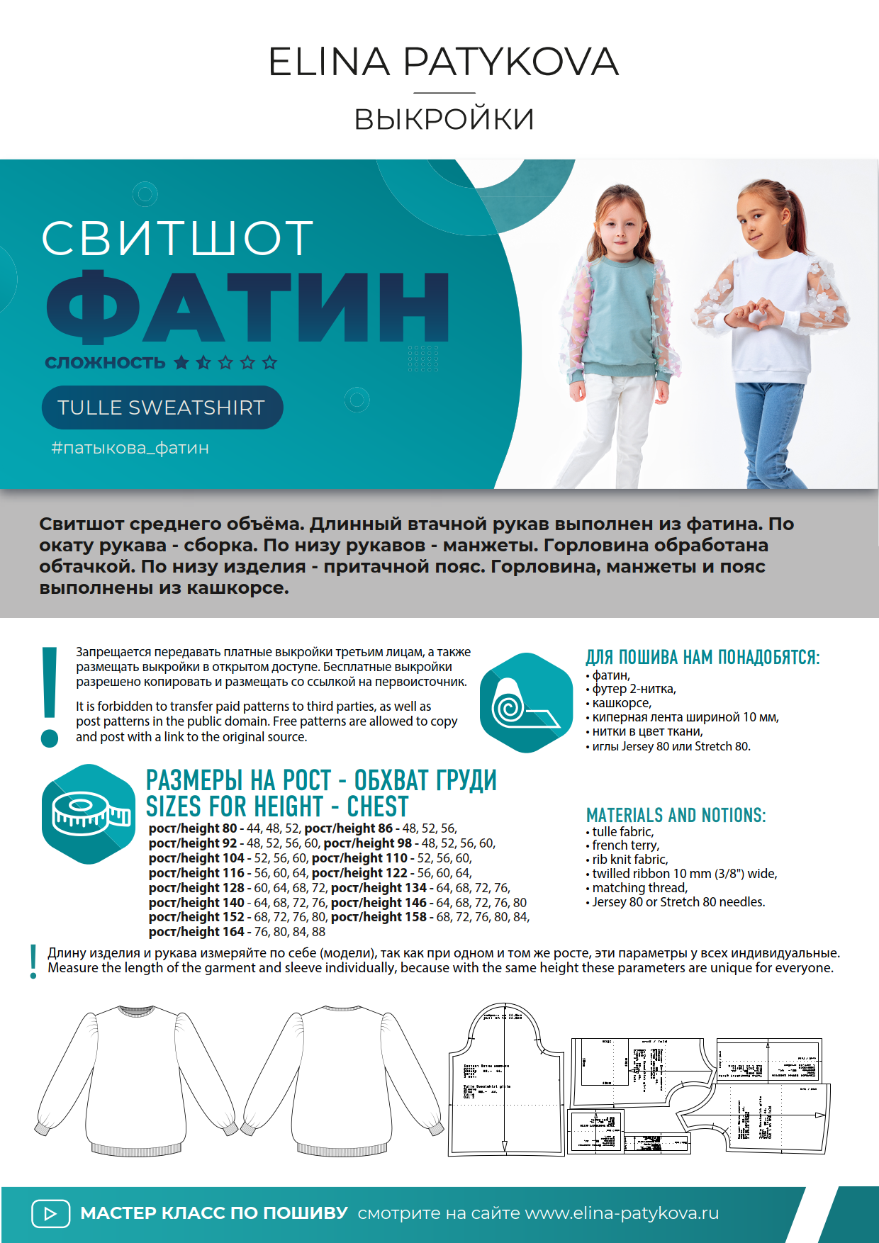 На выкройках указан рост и обхват груди