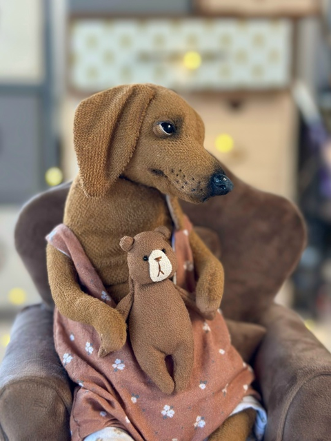 Вы получите: — Выкройки собачки, комбинезона и лежанки — Список материалов — Подробный разбор каждого этапа — Мою помощь Вместе со мной Вы сможете сделать свою собачку. Работы сделанные на мк можно продавать Сидя собачка около 15 см На мк мы подробно разберем все этапы создания собачки породы такса. — раскрой, сшивание деталей — набивка и утяжка головы (опилки) — крепление глаз и век — мягкая набивка тела — тонировка маслом — соединение шплинтовое