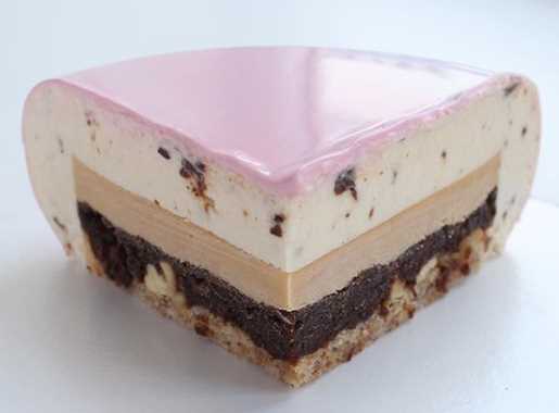 Это современный десерт, состоящий из нежного мусса, фруктово-ягодной начинки и тонкого слоя бисквита (дополнительно в торте могут присутствовать хрустящий слой, крем, карамель, орехи и тд). Это как мороженое, которое держит форму и не тает, при этом требует обязательного хранения в холодильнике!