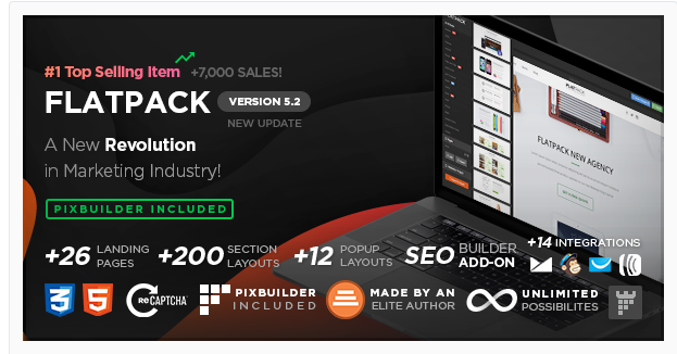 [themeforest] FLATPACK Landing Pages Pack With Page Builder/ Пакет Целевых страниц с конструктором страниц, 2015