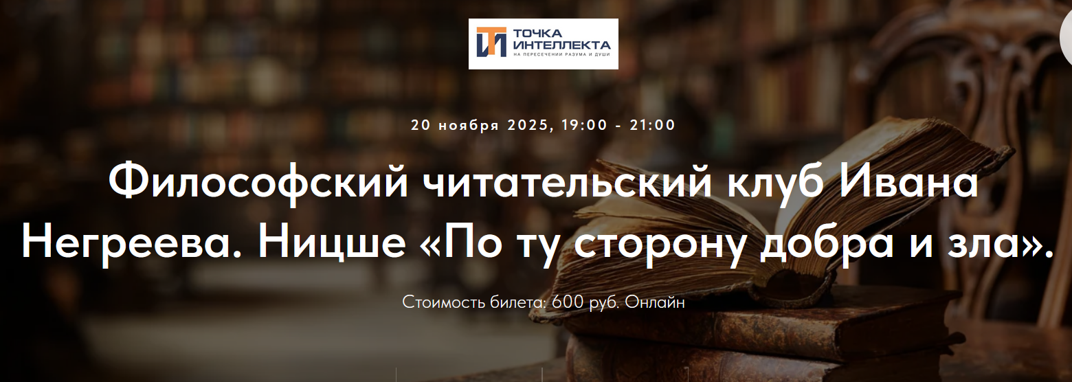 [Точка интеллекта] Философский читательский клуб Ивана Негреева. Лекция 4. Ницше. По ту сторону добра и зла [Иван Негреев]