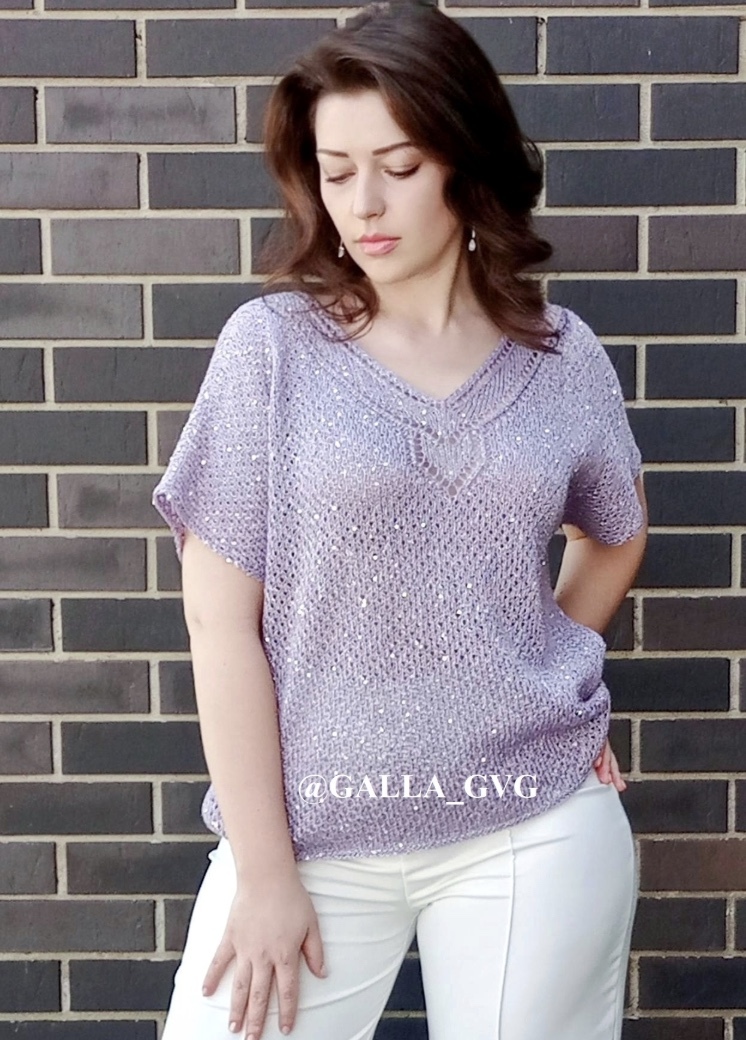 Топ связан из 100% льна с добавлением ниточки люрекса с пайеткой, подойдёт любой летний состав пряжи