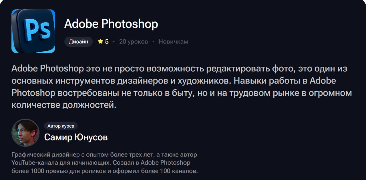 Adobe Photoshop — это программа, без которой сложно представить современный визуальный мир. Её используют дизайнеры, маркетологи, фотографы, SMM-специалисты, иллюстраторы и ещё добрая половина людей, чья работа хоть как-то связана с картинками. И именно её ты сейчас можешь освоить — с нуля, без технического образования, без «художественного таланта от бога» и без того леденящего душу ощущения, когда открываешь программу и не понимаешь вообще ничего. Совсем. Ни одной кнопки.