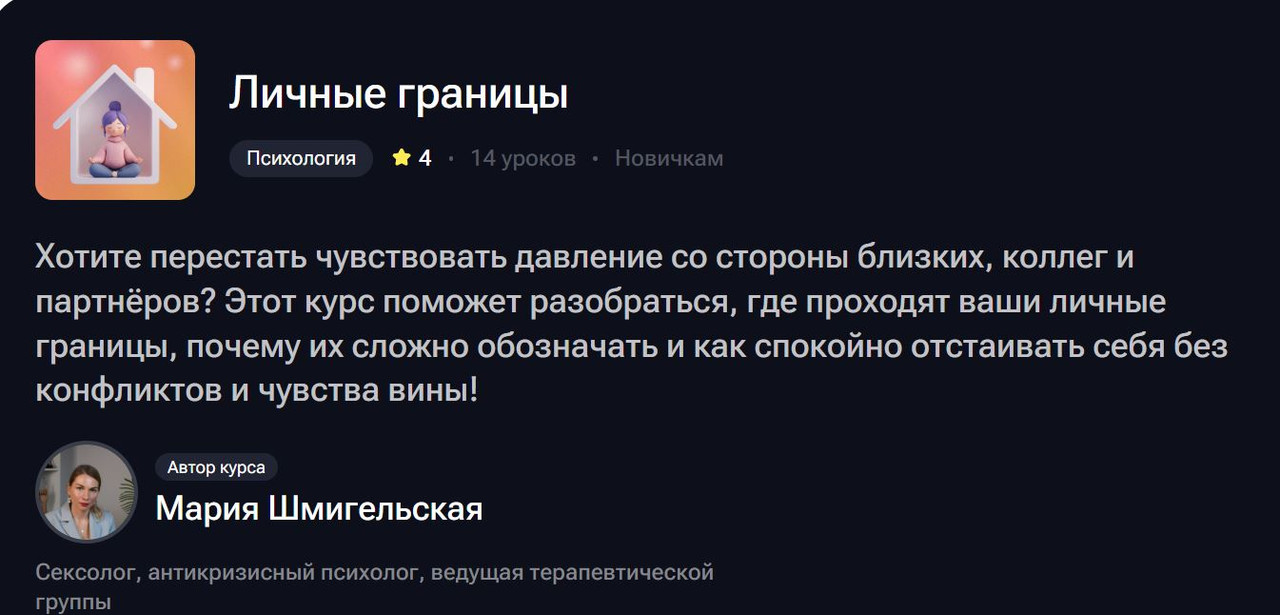 *Курс «Личные границы» — это не про то, чтобы стать жёстче или неудобнее для окружающих. Это про то, чтобы наконец почувствовать себя в безопасности рядом с другими людьми. И немного — с собой.