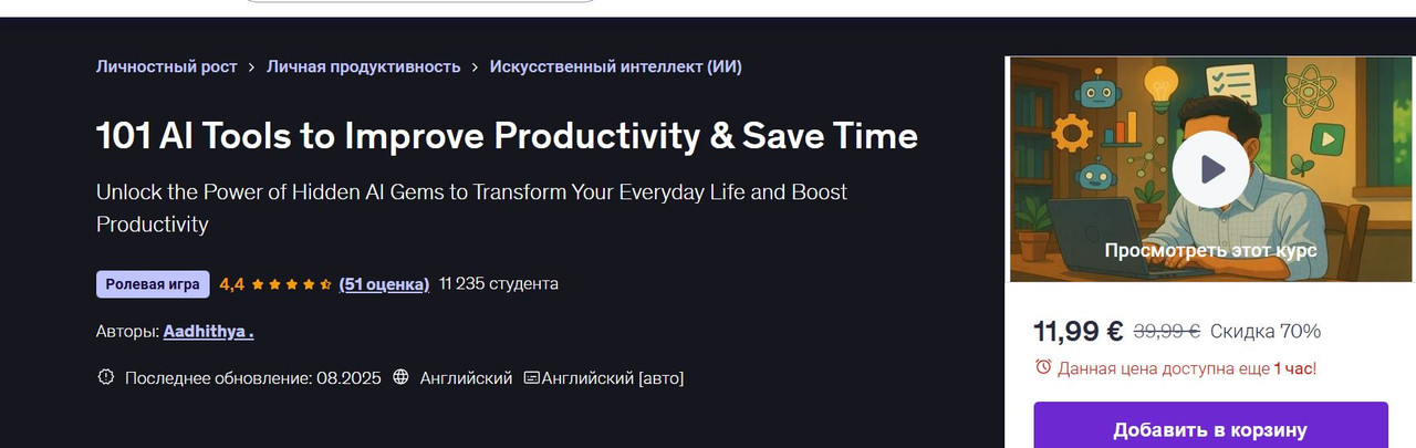 [Udemy] 101 инструмент ИИ для повышения производительности и экономии времени [Аадитья]